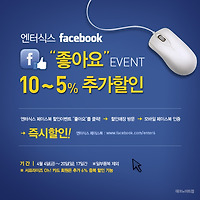 엔터식스 강변 테크노마트점 페이스북 좋아요 이벤트! 세일가에서 또한번 할인 받자! (0) | 2014.04.04 |