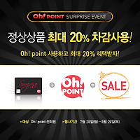 Oh! point 정상상품 최대 20% 차감사용 2014.07.28~2014.08.28 (0) | 2014.07.28 |