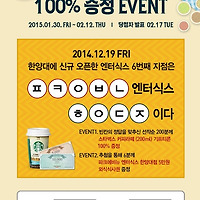 엔터식스 온라인 이벤트 응모하세요~ 초성퀴즈 100% 증정 이벤트! (0) | 2015.02.02 |