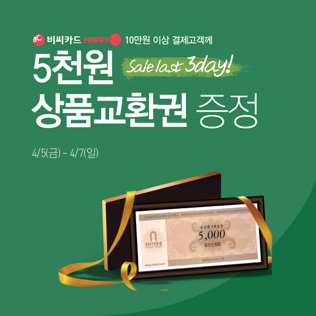 2. BC카드 10만원 결제 고객 5천원 상품교환권 증정