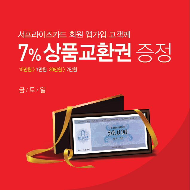 2. 서프라이즈 회원 대상 7% 상품교환권 증정