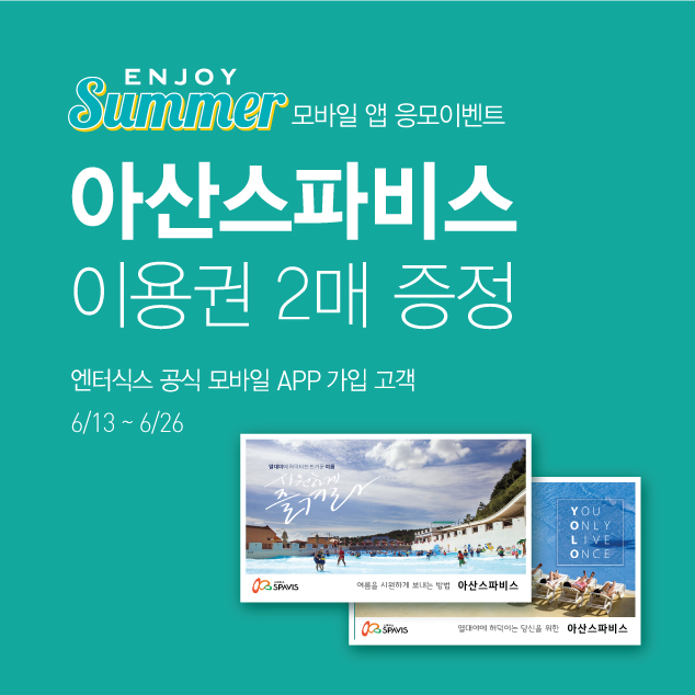 ● 전체메뉴 → 쿠폰 → '아산스파비스 입장권 쿠폰' 다운로드 → 응모 완료