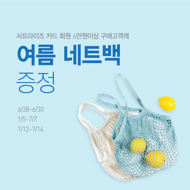 - 증정대상 : 서프라이즈 회원 10만원 이상 구매 고객