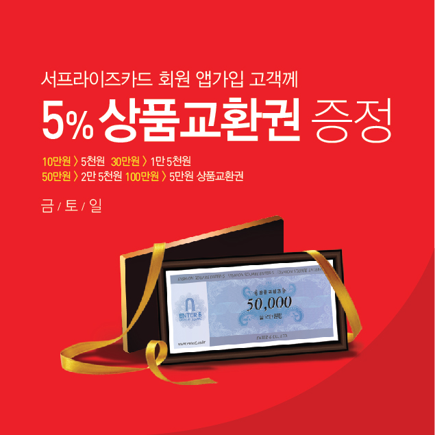 1. 서프라이즈 회원 대상 5% 상품교환권 증정