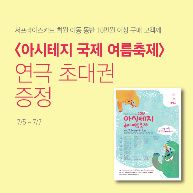 - 증정대상 : 서프라이즈 회원 아동 동반 10만원 이상 구매 고객
