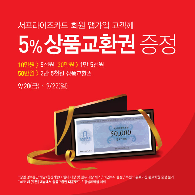 - 대상: 서프라이즈카드 20만원 이상 구매고객