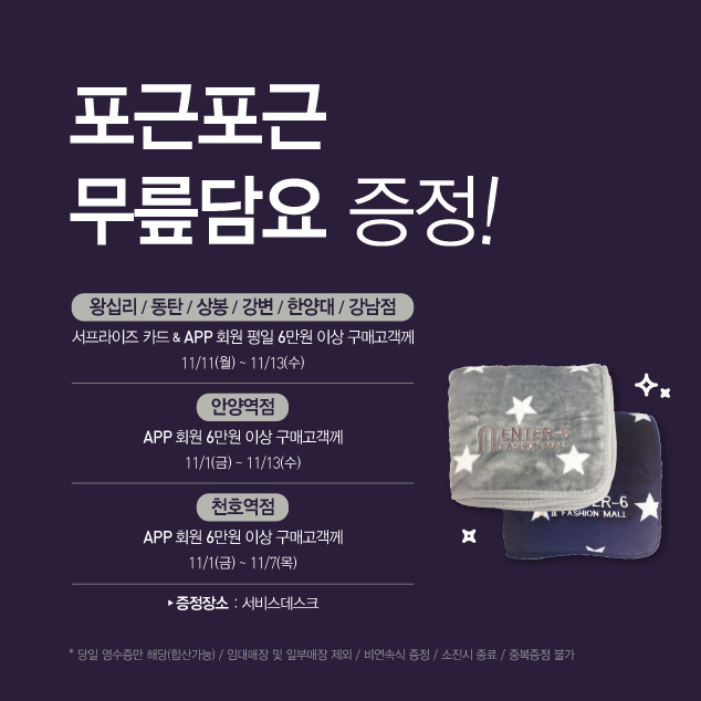 - 대상 : APP 회원 6만원 이상 구매 고객