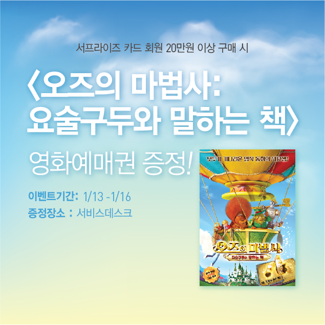 - 대상 : 서프라이즈 카드회원 200만원 이상 구매 고객