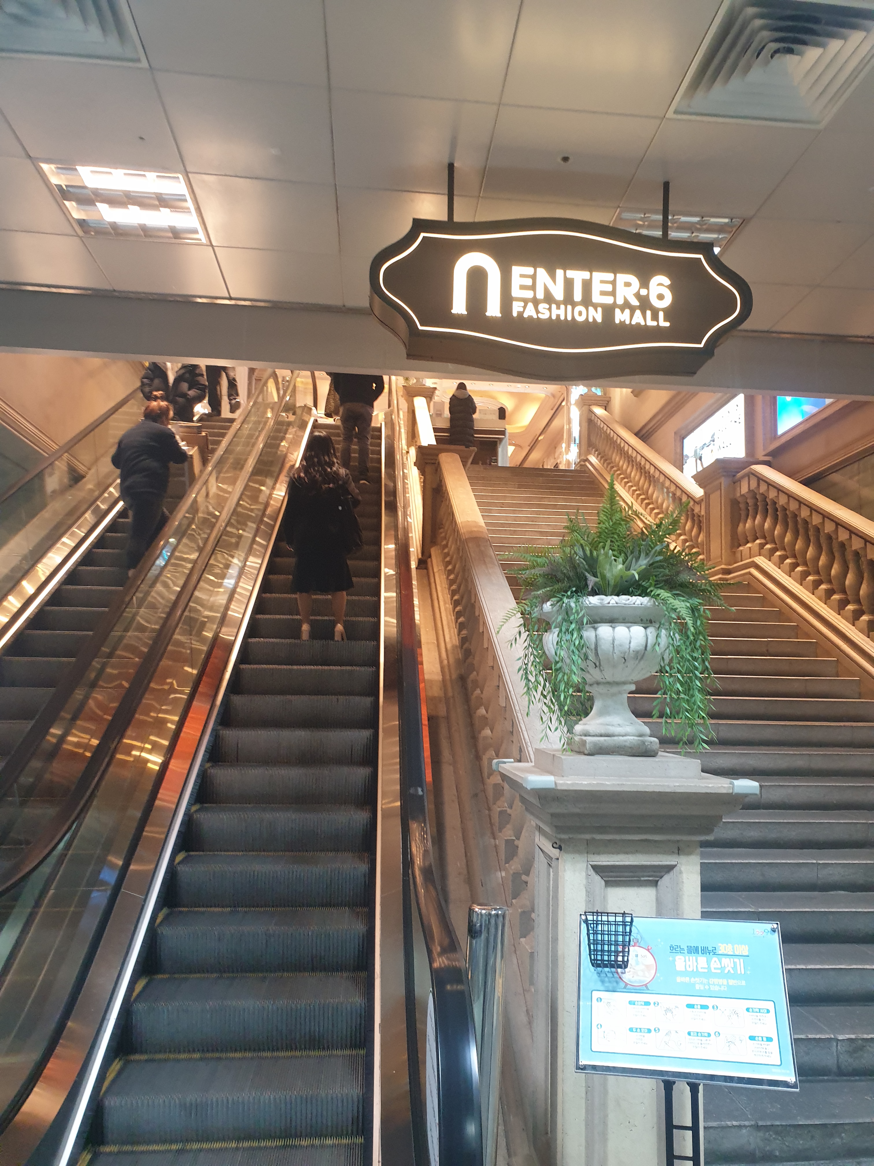 뚜둔! 엔실장도 오랜만에 와보는 엔터식스 왕십리점! 지하철이랑 연결된 입구를 올라가면 엄청 고급진 문양의 인테리어가 있었어요~ 입구부터 세련되고 고급스러운 분위기여서 기분이 좋았답니다 :D