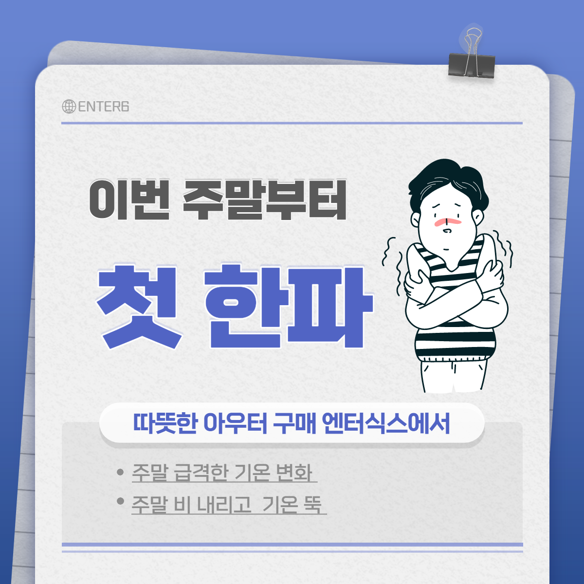 엔터식스에서 따뜻한 아우터 구매해서 따뜻하게 보내세요~ ^^