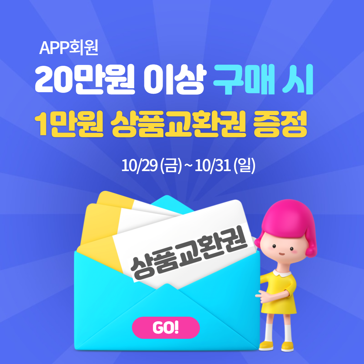 20만원 이상 구매 시 1만원 상품교환권을 받을 수 있다는 사실 !!!