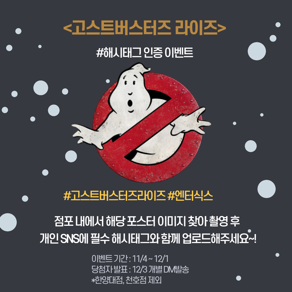 포스터 이미지 촬영 후 필수 해시태그인 [ #고스트버스트라이즈 #엔터식스 ] 와 함께 업로드 하게 되면