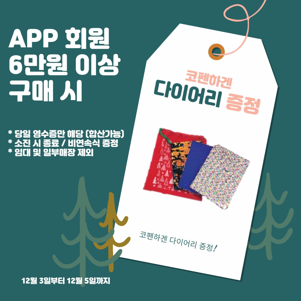 APP회원 6만원 이상 구매 시 코펜하겐 다이어리를 증정합니다.