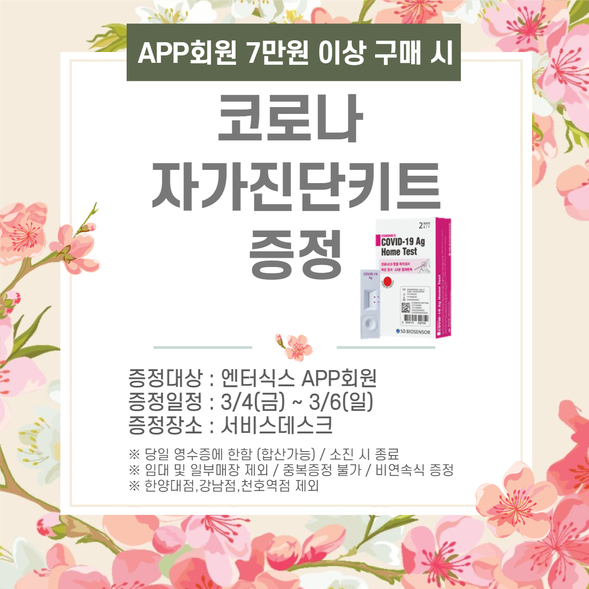 APP회원 7만원 이상 구매 시 코로나 자가진단 키트를 증정합니다.