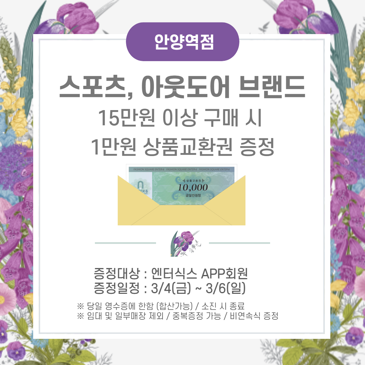 #남성복 #여성복 브랜드 에서 10만원 이상 구매 시 5%상품교환권을 증정합니다.