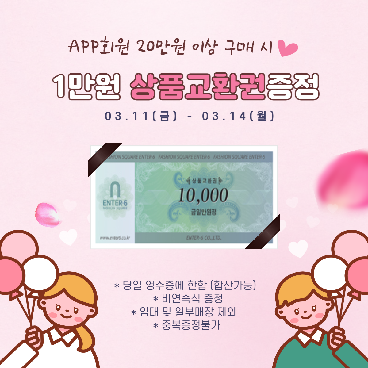 APP회원 20만원 이상 구매 고객에게는 1만원 상품교환권을 드립니다.