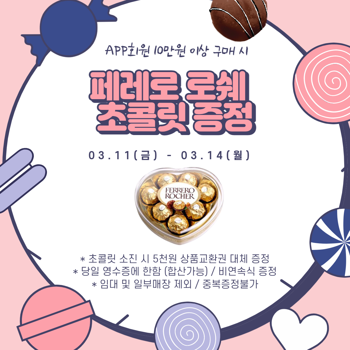 엔터식스 APP회원 10만원 이상 구매 시 #페레로로쉐 초콜릿을 드립니다.