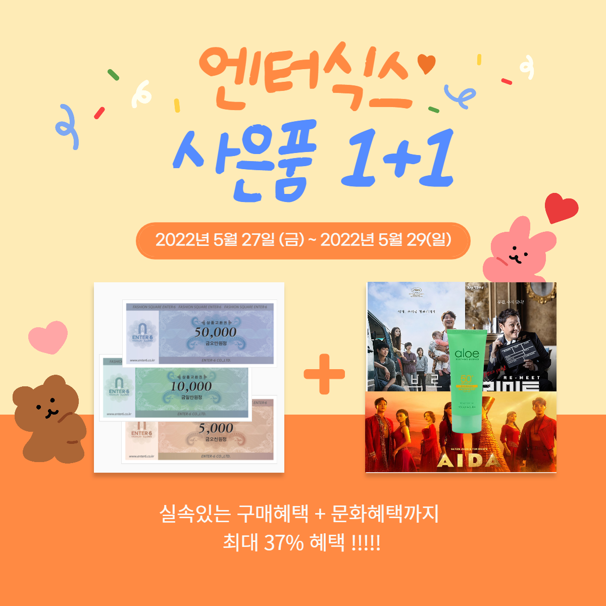 30만원 이상 구매 시 엔터식스 1만 5천원 상품교환권 + 영화 #브로커 예매권 2매를 드립니다.