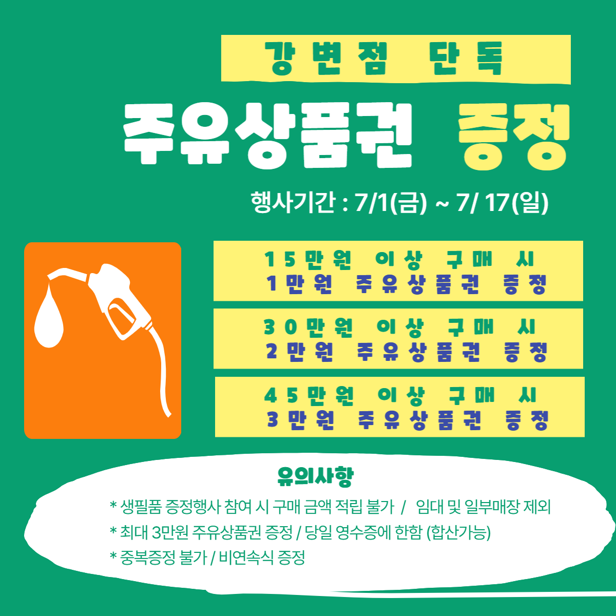 1) 15만원 이상 구매 시 1만원 주유상품권