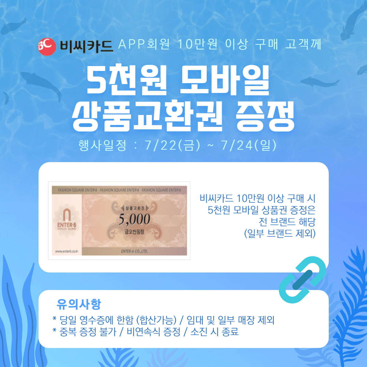 *비씨카드 10만원 이상 구매 시 5천원 모바일 상품권 증정은 전브랜드 해당 (일부 브랜드 제외)