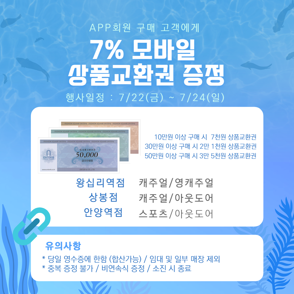 10/30/50만원 이상 구매 시 7% 모바일 상품교환권 증정