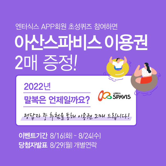 정답자 중 추첨을 통해서 아산 스파비스 이용권 2매를 증정하는 행사를 진행하고 있으니
