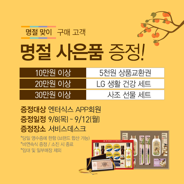 9/8(목) ~ 9/12(월) 명절맞이 구매 고객님에게 명절 사은품을 드립니다.