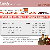 [Event] 내가 제일 잘썼어~! 엔터식스 상품교환권 사용후기 이벤트 당첨자 발표! (11) | 2012.02.03 |