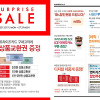▒ 여름 정기 Surprise Sale (서프라이즈 세일) 할인 및 특가전 2013-07-15 ~ 2013-07-29 (31) | 2013.07.15 |