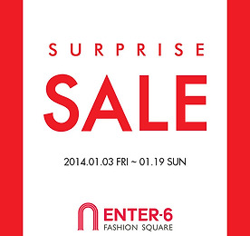 2014-01-03 연합뉴스 엔터식스(대표 이상욱)는 1월 3일부터 19일까지 17일간 신년 첫 서프라이즈 세일을 실시한다고 밝혔다. 이번 신년 서프라이즈 세일은 지속되는 강추위에 대비하여 겨울 인기상품의 물량을 최대한으로 늘리고, 세일 참여 브랜드를 확대하여 고객들이 보다 합리적인 겨울 상품 쇼핑을 즐길 수 있도록 기획되었다. 또한 여성의류, 남성의류, 캐주얼, 유아동, 아웃도어, 스포츠 의류 등 전 품목을 최대 80% 할인된 가격으로 판매해 작년 말 매출 호조세를 이어간다는 방침이다. 왕십리역점에서는 LAP, 라코스테라이브, 미쏘, 더아이잗, 라인, 케네스 레이디, 잇미샤, JJ지고트 등 여성복 및 트래디셔널 브랜드를 최대 60% 할인 판매하며 게스 슈즈 최대 50%, 랜드로바 부츠 전품목 20% 할..