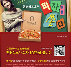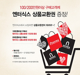 엔터식스(대표 김상대)는 오는 10월 22일(월)부터 11월 1일(목)까지 11일간 엔터식스 왕십리역점, 동탄 메타폴리스점, 가든파이브점, 코엑스점 등 전 점에서 엔터식스 Last Autumn Festival을 개최한다고 밝혔다. 이번 행사에는 마지막 가을의 낭만을 즐기려는 고객 트렌드를 반영하여 아웃도어, 스포츠, 아우터 등 다양한 브랜드의 신상품을 배치하고, 구매금액에 따라 엔터식스 상품교환권, 스크래치 복권, 호텔 VIP 숙박권, 공연 초대권 등 다양한 사은품을 증정하는 등 차별화된 이벤트를 진행하여 고객 호응을 이끌어 낼 예정이다. 특히, 왕십리역점과 가든파이브점에서는 10월 31일 할로윈 데이를 맞아 'Horror Party'가 펼쳐진다. 또한, 왕십리역점에서는 2013학년도 대학수학능력시험 맞..