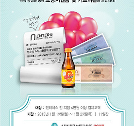 Now Event 썸네일형 리스트형 1월 26일 Pm. 6시가 기다려지는 이유! 엔터식스 BLACK-6 DAY 1월 26일 Pm. 6시가 기다려지는 이유! 엔터식스 BLACK-6 DAY 1월 26일 오후 6시, 엔터식스 홈페이지에서 짜릿한 할인 이벤트가 시작됩니다. 이름하여 엔터식스 Black-6 Day! Black-6 Day 이벤트 응모 시 무려 99%의 엄청난 할인 혜택을 만나보실 수 있으니, 이번 기회를 놓치지 말고 꼭 참여해 보세요! [이벤트 일정] 2015년 1월 26일, 오후 6시 더보기 엔터식스 1월 행운의 영수증 복권 이벤트 [2015.01.19 ~ 01.29] 엔터식스 1월 행운의 영수증 복권 이벤트 엔터식스에서 쇼핑하셨나요? 그렇다면 영수증 그냥 버리지 말고 이벤트에 응모해 보세요! 2015년 1월에도 어김없이 행운의 영수증 복권 이벤트가 진행됩니다. 엔터식스 영수증 하단의 응모 번호를 입력하면, 즉시 당첨을 통해 쇼핑지원금 및 기프티콘을 선물로 드립니다. [이벤트 기간] 2015년 1월 19일 ~ 1월 29일 [대상] 엔터식스 전 지점 6만원 이상 결제고객 [당첨 선물] 1등 쇼핑지원금(상품교환권) 100만원 2등 50만원 3등 10만원 4등 5천원 5등 비타500 기프티콘 [수령기간] 2015년 2월 8일까지 영수증 응모는 엔터식스 홈페이지에서 가능하며, 로그인 후 영수증 응모번호 16자리를 입력하면 당첨 결과를 바로 확인할 수 있습니다. [이벤트 유의사.. 더보기 엔터식스 한양대점 오픈기념 도요타 시에나 주인공을 찾습니다! 엔터식스 한양대점 오픈기념 도요타 시에나 주인공을 찾습니다! 지금 엔터식스 한양대점에 오셔서 응모하고 가세요! 응모기간 : 2014.12.19 ~ 2015.1.18추첨일 : 2015.1.25 (오후 2시) 홈페이지 고지 제세공과금 22% 및 취득세, 등록세 당첨자 부담응모권 1인1매 증정모델명 : TOYOTA SIENNA 3.5 Limited 4WD (Silver Metallic) 더보기 파크에비뉴 엔터식스 한양대점 오픈기념 사진응모 이벤트 1.2~1.18 파크에비뉴 엔터식스 한양대점 오픈기념 사진응모 이벤트 1.2~1.18 파크에비뉴 엔터식스 한양대점!주말에 가보셨나요?파크에비뉴 엔터식스 한양대점의 모습을 지금 응모하고이벤트를 공유해보세요! 선착순 300명에게!덴마크 드링킹 딸기 기프티콘을 드려요~ 12월 19일 파크에비뉴 엔터식스 한양대점 오픈기념~!!엔터식스 페이스북에서 참여가능합니다! 참여기간 : 1.2 ~ 1.18 이벤트 참여하기 더보기 엔터식스 2015 새해 첫 서프라이즈 세일! 2015.01.02~01.18 엔터식스 2015 새해 첫 서프라이즈 세일! 2015.01.02~01.18 더보기 12월 엔터식스 홈페이지 선착순 가입 이벤트! 산타할아버지는 알고계신대! 12월 엔터식스 홈페이지 선착순 가입 이벤트! 산타할아버지는 알고계신대! 더보기 파크에비뉴 엔터식스 한양대점 오픈 기념 OX 퀴즈 이벤트 12.01~12.31 파크에비뉴 엔터식스 한양대점 오픈 기념 OX 퀴즈 이벤트 12.01~12.31 666명 에게 아이패드 에어2, 엔터식스 한양대점 5만원 상품교환권, 스타벅스 아메리카노를 드립니다! 12월 19일 파크에비뉴 엔터식스 한양대점 오픈 기념!! 엔터식스 페이스북에서 이벤트 공유하고 한양대점 O/X퀴즈를 맞춰보세요! 참여하신 팬 중 666명을 추첨하여 선물을 드립니다^^ 1등 아이패드 에어2 (6명) 2등 파크에비뉴 엔터식스 한양대점 5만원 상품교환권 (60명) 3등 스타벅스 아메리카노 (600명) 참여기간 : 2014.12.01~12.31 더보기 엔터식스 홈페이지 신규가입 선착순 증정이벤트! 2014.11.24~12.07 더보기 이전 1 ··· 14 15 16 17 18 19 20 ··· 34 다음