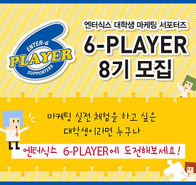 Now Event 썸네일형 리스트형 엔터식스 여름 휴가 사진 콘테스트 수상/당선작 대공개! 엔터식스 여름 휴가 사진 콘테스트 수상/당선작 대공개! 1등 : 함께 있어 행복한 우리 가족 이번 여름 휴가에 다녀온 대관령 양떼목장...!! 비록 날씨가 좋지 않아 비가 조금 왔지만, 그래도 함께 떠난 가족 여름 여행이어서 아이들과 엄마의 얼굴엔 미소가 가득하였답니다. 이곳에서 너무 귀여운 양들에게 먹이도 주고 멋진 초원을 마음껏 걷고 달리며 행복한 순간을 보냈지요. 그 행복하고 아름다웠던 여름날의 추억을 담아보았습니다. 2등 : 으리으리한 제주도 여행 제주도 여행에서 가장 맘에 드는 컷입니다. 일상탈출 !! 아자 2등 : 사랑하는 나의 가족~ 소중해 사랑해 ♡ 회사 문제로 주말 부부로 4년을 보냈습니다. 아빠를 찾는 아들을 볼때마다 가슴이 아팠고, 가족이 소중하다고 생각해서 주말부부를 청산했습니다. .. 더보기 [엔터식스 페이스북] 여름 휴가 사진 콘테스트 수상자 발표 더보기 [엔터식스 전점 이벤트] Amazing Fashion STORY 2014.08.18~08.28 [ 왕십리역점 ] ※ 사진을 클릭하면 큰 이미지로 보실 수 있습니다. [ 동탄 메타폴리스점 ] ※ 사진을 클릭하면 큰 이미지로 보실 수 있습니다. [ 상봉점 ] ※ 사진을 클릭하면 큰 이미지로 보실 수 있습니다. [ 강변 테크노마트점 ] ※ 사진을 클릭하면 큰 이미지로 보실 수 있습니다. [ 가든파이브점 ] ※ 사진을 클릭하면 큰 이미지로 보실 수 있습니다. 더보기 엔터식스 페이스북 휴가 사진 콘테스트 2014.07.28~08.17 더보기 바캉스 지원 행운의 영수증 복권 이벤트! “바캉스 지원 행운의 영수증 복권 이벤트!" 이벤트 기간 : 7월 14일(월) ~ 7월 27일(일)까지 참여 방법 : 홈페이지 로그인 후 이벤트 페이지에 영수증 복권을 등록! 이벤트 경품 증정 : 8월 10일까지 수령 가능 (단, 기프티콘은 8월 중 일괄발송) ☞ 이벤트 바로가기 더보기 서프라이즈 카드 회원 스크래치 복권 이벤트 06.20~07.31 더보기 엔터식스 대학생 마케팅 서포터즈 6-player 8기 모집 엔터식스 대학생 마케팅 서포터즈 6-player 8기 모집 패션과 유통에 관심이 많은 친구들을 위한 반가운 소식! 뜨거운 열정과 참신한 아이디어를 발휘하며 마케팅 실전을 체험할 수 있는 특별한 기회! 엔터식스 대학생 마케팅 서포터즈 6-player 8기 모집이 시작되었습니다~!! 모집기간 2014.06.02~2014.06.15 모집 대상 마케팅 실전 체험을 하고 싶은 대학생 패션, 유통, 마케팅에 관심이 많은 대학생 블로그, 카페, 대학 동아리 등 (개인) 커뮤니티 운영 경험이 있는 대학생 페이스북, 트위터, 인스타그램 등 다양한 SNS 활동과 지식을 겸비한 대학생 글쓰기 및 사진촬영, 동영상 편집 등 컨텐츠 제작이 용이한 대학생 활동 내용 엔터식스 대학생 마케팅 서포터즈 6-player가 되시면 엔터식.. 더보기 Oh! point 정상상품 최대 50% 차감사용 06.06~06.30 더보기 이전 1 ··· 16 17 18 19 20 21 22 ··· 34 다음