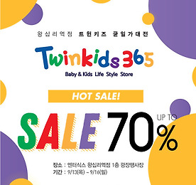 엔터식스 왕십리역점, 트윈키즈365 울트라 딜! 안녕하세요 엔실장입니다 ͡° ͜ʖ ͡°9월이 되자마자 날이 갑자기 선선해졌죠? 우리 아이들 추울까봐 긴팔들을 부랴부랴 꺼내보려 하니 마땅히 입힐 것도 없고.... 근처 백화점이나 마트로 가자니 가격이 부담스럽긴 마찬가지죠..ㅠㅠ 그래서 엔터식스 왕십리역점이 준비한 유아동 라이프스타일 패션 브랜드 Twinkids365 기간 : 9월13일(목) ~ 9/16(일) , 4일장소 : 엔터식스 왕십리역점 1층 광장행사 내용 :- 가을 기획상품 : 7,900원 ~ 29,900원- 겨울 이월상품 : 5,000원 ~- F/W 실내복 : 9,900원 ~ 쇼핑 TIP!- 티/바지 : 5,000원 ~ - 셔츠/원피스/플라우스/치마 : 7,000원 ~- 상하 세트복 : 9,900..