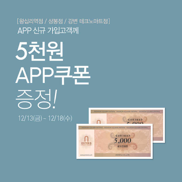 - 확인방법 : [My쿠폰함] > 5천원 APP쿠폰 확인 (상품 결제 시 쿠폰 제시)