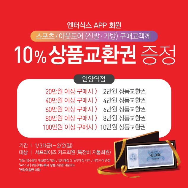 * 5% 상품교환권 증정(안양역점)