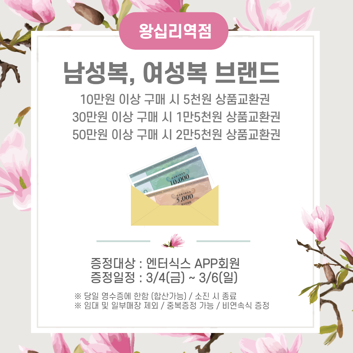 #남성복 #여성복 브랜드 에서 10만원 이상 구매 시 5%상품교환권을 증정합니다.