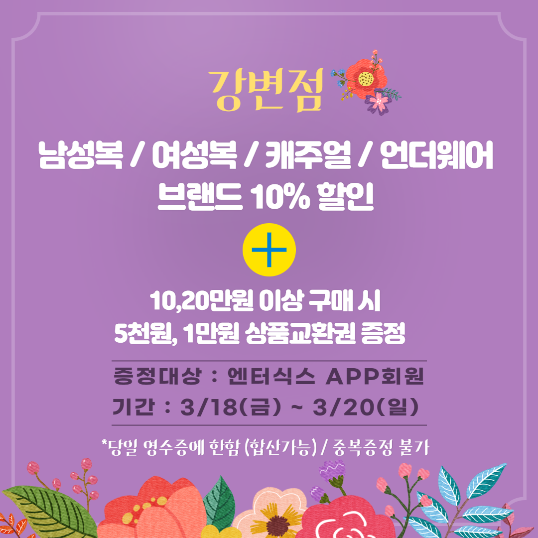 10 / 20만원 이상 구매 시 5천원, 1만원 상품교환권을 증정합니다.
