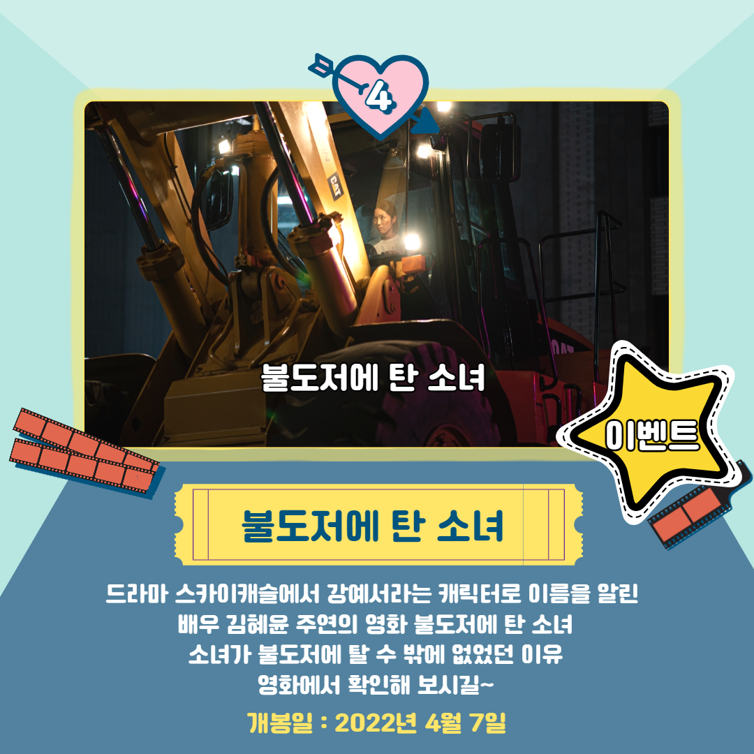 영화 불도저에 탄 소녀는 현재 엔터식스 인스타그램과 페이스북에서 예매권 증정하는 이벤트를 하고 있으니