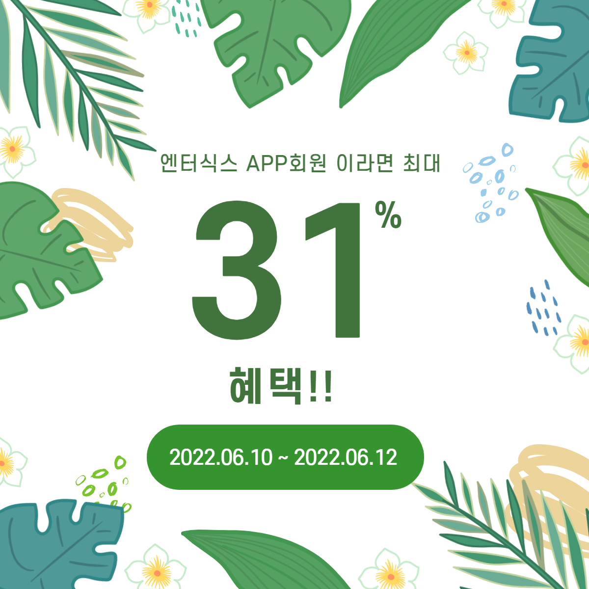 엔터식스 APP회원이라면 최대 31%의 혜택을 받을 수 있는 이 기회를 놓치지 마세요~!!