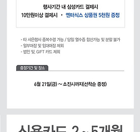 무이자할부 썸네일형 리스트형 엔터식스, 삼성 · 비씨 카드 결제고객 사은대축제 행사 기간 내 삼성 카드 결제 시, 엔터식스 상품권 증정 및 2~5개월 무이자 할부 행사 기간 내 비씨 카드 결제 시, 엔터식스 2~5개월 무이자 할부 더보기 엔터식스, 비씨/삼성 카드 무이자 할부 이벤트 엔터식스 전 점, 신용 카드 무이자 할부 이벤트 비씨 / 삼성 카드 결제시 ▶ 2~5개월 무이자 할부 더보기 이전 1 다음