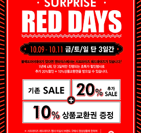 엔터식스 세일 썸네일형 리스트형 [세일소식] 코리아 블랙프라이데이보다 더 강력한 엔터식스 서프라이즈 레드데이즈 [10.09 ~ 10.11] [세일소식] 코리아 블랙프라이데이보다 더 강력한 엔터식스 서프라이즈 레드데이즈 [10.09 ~ 10.11] 코리아 블랙프라이데이? 엔터식스는 레드데이즈다! 기존 세일에 추가 20% 세일, 그리고 10%상품교환권 증정까지! 10월 9일부터 11일까지 단 3일간, 오직 엔터식스에서만 누릴 수 있는 초특가 할인행사! 엔터식스 서프라이즈 레드데이즈와 함께 즐거운 주말 보내세요~ [행사일시] 2015년 10월 9일(금) ~ 10월 11일(일) [행사내용] 기존 SALE + 추가 20% 할인 + 10% 상품교환권 증정 [이벤트 유의사항] - 서프라이즈 레드데이즈 행사 미실시 브랜드 구매시 정상상품에 한하여 서프라이즈 카드 6% 할인 가능하나 상품교환권 증정 불가 - 10% 상품교환권 증정 행사는 20 / 40 / .. 더보기 엔터식스 여름 정기 세일 마지막 주! 푸짐한 여름 이벤트 안내 (엔터식스 세일, 영화 쓰리썸머나잇 예매권, 캐리비안베이 골드시즌 이용권 증정 외) 엔터식스 여름 정기 세일 마지막 주! 푸짐한 여름 이벤트 안내 (엔터식스 세일, 영화 쓰리썸머나잇 예매권, 캐리비안베이 골드시즌 이용권 증정 외) 엔터식스 여름 정기 세일이 드디어 마지막 한 주만을 남겨두고 있습니다. 점별 브랜드 세일 및 다양한 이벤트 혜택들이 준비되어 있으니, 휴가 떠나기 전 엔터식스 여름 정기 세일로 실속 있는 여름 쇼핑 즐겨 보세요~ [행사 기간] 2015년 7월 13일 ~ 7월 19일 [점별 브랜드 세일 안내] 엔터식스 e-전단을 통해 점별 브랜드 세일 소식을 확인할 수 있습니다. (GO!) [주요 이벤트 살펴보기] 100% 당첨 스크래치 복권 이벤트 - 증정기간 : 7월 17일 ~ 19일 - 증정대상 : 10만원 이상 구매고객(구매금액별 1인 최대 3매 지급) 영화 예매권 1인.. 더보기 엔터식스 여름 정기 세일과 함께 즐기는 행사 및 이벤트 안내 [2015.07.03 ~ 07.12] 엔터식스 여름 정기 세일과 함께 즐기는 행사 및 이벤트 안내 [2015.07.03 ~ 07.12] 다가오는 여름 휴가, 엔터식스 서프라이즈 여름 정기 세일과 함께 실속 있게 준비해 보세요! 점별 브랜드 세일 소식과 함께 7월 12일까지 진행되는 행사 및 이벤트 소식을 전달해 드립니다. [행사 기간] 2015년 7월 3일 ~ 7월 12일 [점별 브랜드 세일] 엔터식스 e-전단을 통해 점별 브랜드 세일 소식을 확인할 수 있습니다. (GO!) [주요 이벤트 살펴보기] 5% 상품교환권 증정! - 증정기간 : 7월 3일 ~ 5일 / 7월 10일 ~ 12일 - 증정대상 : 서프라이즈 카드회원 구매고객 영화 예매권 1인 2매 증정 - 증정기간 : 7월 3일 ~ 5일 - 증정대상 : 20만원 이상 구매고객 (서프라이즈.. 더보기 [엔터식스 여름 세일] 여름 바캉스 패션을 위한 절호의 쇼핑찬스! 엔터식스 서프라이즈 레드데이즈! (6.26~28) [엔터식스 여름 세일] 여름 바캉스 패션을 위한 절호의 쇼핑찬스! 엔터식스 서프라이즈 레드데이즈! (6.26~28) 미국에 블랙프라이데이가 있다면 엔터식스에는 서프라이즈 레드데이즈가 있다! 6월 26일부터 28일까지 단 3일간 엔터식스 서프라이즈 레드데이즈가 진행됩니다. 현재 진행중인 여름 정기 세일에서 한번 더 세일을 받을 수 있는 절호의 기회! 올 여름 바캉스 패션을 엔터식스와 함께 알뜰하게 준비해 보세요~ [행사기간] 2015년 6월 26일 ~ 28일 [행사장소] 엔터식스 왕십리역점, 동탄메타폴리스점, 강변테크노마트점, 상봉점, 파크에비뉴 한양대점 (가든파이브점 제외) [쇼핑혜택] 1. 여름 정기 세일 + 추가 최대 20% 세일 2. 구매 금액별 10% 상품교환권 증정 [유의사항] 1. 일부 브랜드.. 더보기 [브랜드 세일] 다양한 이벤트와 쇼핑 혜택이 가득! 엔터식스 여름 정기 세일 START!! [브랜드 세일] 다양한 이벤트와 쇼핑 혜택이 가득! 엔터식스 여름 정기 세일 START!! 오늘부터 엔터식스 서프라이즈 여름 정기 세일이 실시됩니다! 점별 브랜드 행사 및 쇼핑을 더욱 즐겁게 만들어 줄 다양한 이벤트들이 준비되어 있으니, 내용 참고 하시어 알찬 쇼핑 즐기시길 바랍니다. 올 여름도 엔터식스와 함께^^! [행사 기간] 2015년 6월 19일 ~ 7월 2일 [브랜드 행사 내용] 엔터식스 e-전단을 통해 점별 브랜드 세일 소식을 확인할 수 있습니다. (GO!) [주요 이벤트 살펴보기] 엔터식스 럭키박스 이벤트 - 기간 : 6월 19일 ~ 21일 - 장소 : 점내 행사장 (가든파이브점 제외) - 1인 구매수량 제한 없음 엔터식스 피크닉 시트 증정 - 증정기간 : 6월 19일 ~ 21일 - 증정대상.. 더보기 엔터식스 봄 정기 세일 시작! 봄 서프라이즈 세일 자세히 보기 [2015.04.03 ~ 04.19] 엔터식스 봄 정기 세일 시작! 봄 서프라이즈 세일 자세히 보기 [2015.04.03 ~ 04.19] 엔터식스에서 드디어 봄 정기 세일이 시작되었습니다! 엔터식스에서 진행하는 최대 봄 행사인 만큼 다양한 브랜드별 세일이 실시 되는데요. 평소 사고 싶었던 브랜드 상품이 있었다면 이번 주말, 엔터식스에 방문하여 풍성한 할인 혜택을 누려 보세요! 또한 다양한 이벤트가 진행되고 있으니 참고하세요~:D [행사 기간] 2015년 4월 3일 ~ 4월 19일 [주요 이벤트 살펴보기] 구매금액별 5% 상품교환권 증정 - 증정기간 : 4월 (3일~5일, 10~12일, 17~19일) - 증정장소 : 각 점 서비스데스크 GIFT EVENT (1) 매쉬파우치 4P세트 증정