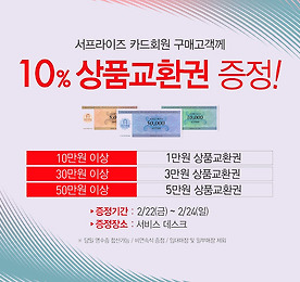 이벤트 썸네일형 리스트형 엔터식스 APP회원이라면 엔터식스 APP회원이라면 [전체메뉴 > 이벤트 / 프로모션 > 낱말퀴즈 ] 에 들어가서 퀴즈를 풀면 정답자 중 추첨을 통해서 아산 스파비스 이용권 2매를 증정하는 행사를 진행하고 있으니 이벤트에 도전해보세요~ 더보기 엔터식스 APP 이벤트 말복에 엔터식스가 치킨을 쏩니닭!!!~♬ 추첨을 통해 BBQ 치킨 상품권(18,000원 상당)을 드립니닭~! ※ 이벤트 참여방법 ※ ① 엔터식스 APP 로그인해주세요~! ② [My쿠폰 > 쿠폰등록] "말복치킨주세요" 입력 ③ 자동응모 완료 ★이벤트 기간★ 811(목)~8/15(월), 당첨자 8/16(화) 개별 문자 연락 ☆ 경품내용 ☆ BBQ 상품권 (1만8천원상당) ▶경품수령처 : 엔터식스 강변점 1층 서비스데스크 더보기 LOVE & WEDDING [05.20(월) ~ 05.29(수)] LOVE & WEDDING [05.20(월) ~ 05.29(수)] 5월은 가정의 달이자 결혼시즌이 많은 달이기도 하죠^^ 가정의 달 마지막, 새로운 가정을 이루기 위해 웨딩 마치를 준비하는 예비 신혼부부분들! 러브 & 웨딩 , 여러분들을 위한 이벤트를 준비했으니 많은 참여부탁드려요^^ [전점 주요 이벤트 살펴보기] 1. 성년의 날 맞이, 5천원 상품교환권 증정 - 대상 : 멤버십 APP가입 고객 중 2000년생 - 이벤트기간 : 5/20(월) ~ 5/23(목) - 경품발송 : 5/24(금) 2. 방수드라이백 증정 - 대상 : 서프라이즈 회원 15만원 이상 구매 고객 - 이벤트기간 : 5/20(월) ~ 소진 시 종료 ※ 당일 영수증 합산가능/ 일부매장 및 임대매장 제외/ 비연속식 증정/ 특전비 유효기간 종.. 더보기 LOVE & THANKS [04.25(목) ~ 05.06(월)] LOVE & THANKS [04.25(목) ~ 05.06(월)] 다소 더웠던 4월, 봄의 뜨거운 공기를 씻겨줄 봄비와 함께 5월을 맞이할 준비를 하고 계신가요~? 5월은 가정의 달로 2019년엔 어떤 소중한 추억을 만들까 고민하고 계신가요~? 연 이은 ~~~날, ~~~날, ~~~날. 이 좋은 날 엔터식스와 함께 보내지 않으실래얄? [전점 주요 이벤트 살펴보기] 1. 5% 상품교환권 증정 - 대상 : 서프라이즈 카드 APP가입 고객 6/10/20/30/40/50/70/100만원 구매고객 - 증정기간 : 4/26(금) ~ 4/28(일) - 증정장소 : 어플 ※ 당일 영수증 합산가능/ 일부매장 및 임대매장 제외/ 비연속식 증정/ 특전비 유효기간 종료된 회원 증정불가 ※ 모바일앱 증정 ※ 강남점, 천호역점 제외.. 더보기 동탄/강변점 특별 10% 상품교환권 행사 2/22(금) ~ 2/24(일) 단 3일!엔터식스 동탄점/강변점 서프라이즈 회원 고객을 위한 특별 EVENT! 자세한 행사 문의는 아래 번호로 주시기 바랍니다.엔터식스 강변점 02) 6342-6000엔터식스 동탄점 031) 371-6900 더보기 선미와 함께 신학기 START [02.21(목) ~ 03.06(수)] 선미와 함께 신학기 START [02.21(목) ~ 03.06(수)] 엔터식스 가족 여러분~ 안녕하세요!2019년 엔터식스 공식모델은 뉴규???? 바로 선미입니다^^선미의 상큼발랄한 기운을 모아 여러분께 드리는 새학기 선물!선미와 함께 산뜻한 신학기를 시작해보아요 : )선미와 함께 START !! 행사기간 : 2019.02.21(목) ~ 2019.03.06(수) [전점 주요 이벤트 살펴보기] 1. 5% 상품교환권 증정 - 대상 : 서프라이즈 카드 회원 구매고객- 증정기간 : 3/1(금) ~ 3/3(일)- 증정장소 : 서비스 데스크 ※ 당일 영수증 합산가능/ 일부매장 및 임대매장 제외/ 비연속식 증정/ 특전비 유효기간 종료된 회원 증정불가 2. 선미 마우스 패드 증정 - 대상 : 서프라이즈 카드 회원 3만.. 더보기 2019년 첫 서프라이즈 세일 [01.03(목) ~ 01.20(일)] 2019년 첫 서프라이즈 세일 [01.03(목) ~ 01.20(일)] 엔터식스 가족 여러분~ 안녕하세요!드디어 다음 주면 기다리고 기다리던 크리스마스! 그리고... 해피뉴이어...!뭐가 이렇게 시간이 빨리 가는건지 벌써 크리스마스가 다가오네요..ㅠㅠ아직도 산타할아버지의 선물을 기다리시나요? 산타의 선물은 없다는걸 아는 여러분들을 위한! 엔터식스의 진짜 선물 파티! 엔실장이 소개합니다 ʕ•̀ω•́ʔ✧ 행사기간 : 2018.12.17(월) ~ 2019.01.03(일) [전점 주요 이벤트 살펴보기] 1. 5% 상품교환권 증정 - 대상 : 서프라이즈 카드 회원 구매고객- 증정기간 : 1/4(금) ~ 1/6(일)- 증정장소 : 서비스 데스크 ※ 당일 영수증 합산가능/ 일부매장 및 임대매장 제외/ 비연속식 증정/ .. 더보기 [강변 테크노마트점] 엔터식스 공식모델 솔빈 팬사인회 후기 [강변 테크노마트점] 엔터식스 공식모델 솔빈 팬사인회 후기 안녕하세요~~ 엔실장입니다!오늘은 저번 주 일요일에 있었던 솔빈 팬사인회 후기를 들려드리려고 해요^^못 오신 분들은 제가 찍은 사진과 동영상으로 조금이나마 위로의 시간이 되시길 바라요 : )장소는 엔터식스 강변 테크노마트점 정문 야외 무대였고, 시간은 오후 4시였습니다!엔실장이 전 날 봤던 이 날 날씨는,,,, 흐리고 비... 흐림... 비가 오면 어쩌나, 날이 흐려서 많이들 안오시면 어쩌나.. 걱정이 이만저만 아니었어요 ㅠㅠㅠ 하지만!! 아시다시피 비는 오지 않았고 날만 쪼~금 흐렸어요! 오히려 다행이더라구요~~ 해가 쨍쨍 비췄으면 기다리시는 팬분들도, 우리 솔빈님도, 그리고 저 엔실장도 짜증이 뿜뿜 났을거에요ㅋㅋㅋㅋㅋ 최적(?)의 날씨와 함께.. 더보기 이전 1 2 3 4 ··· 8 다음